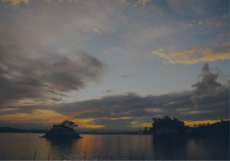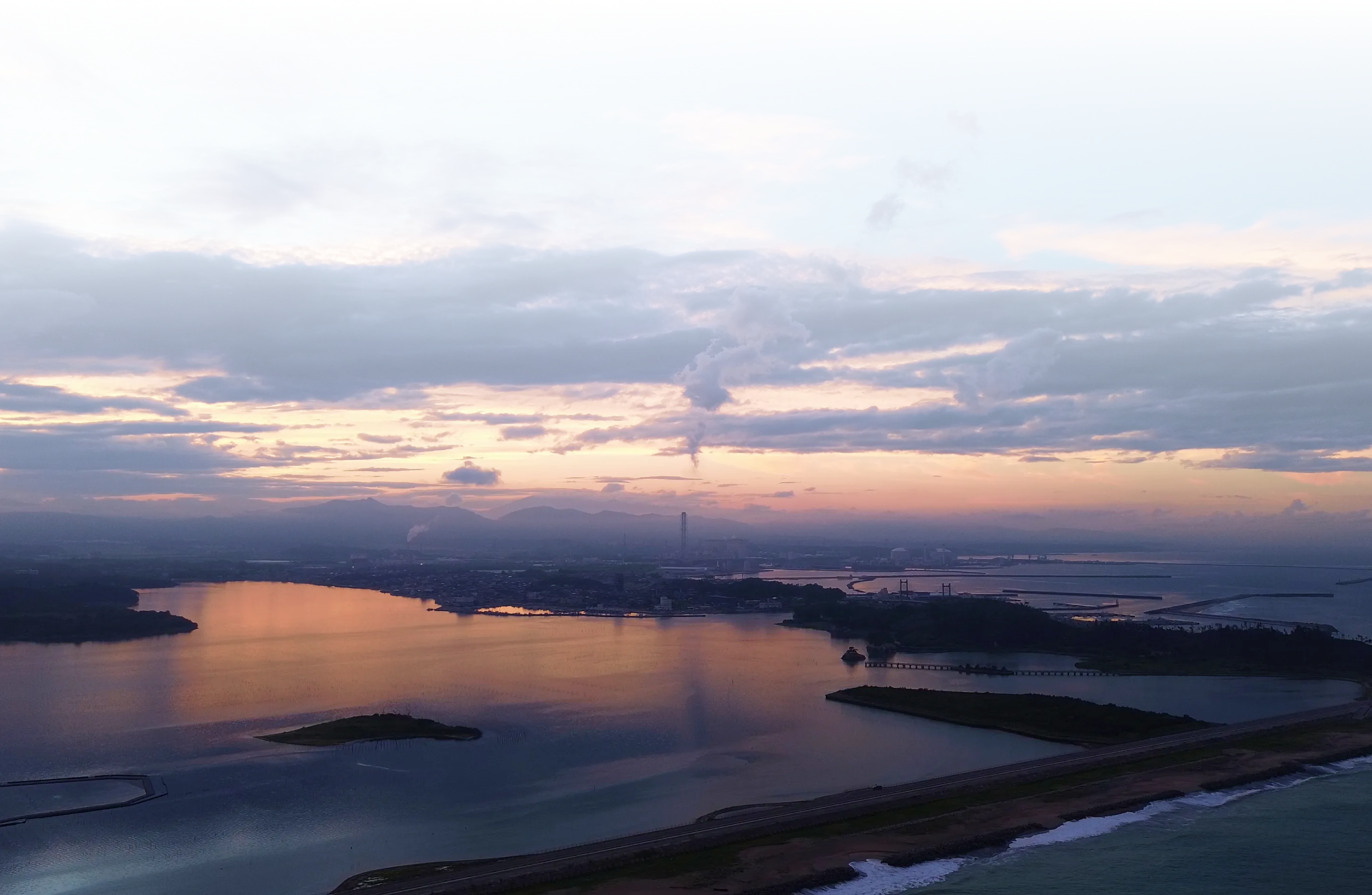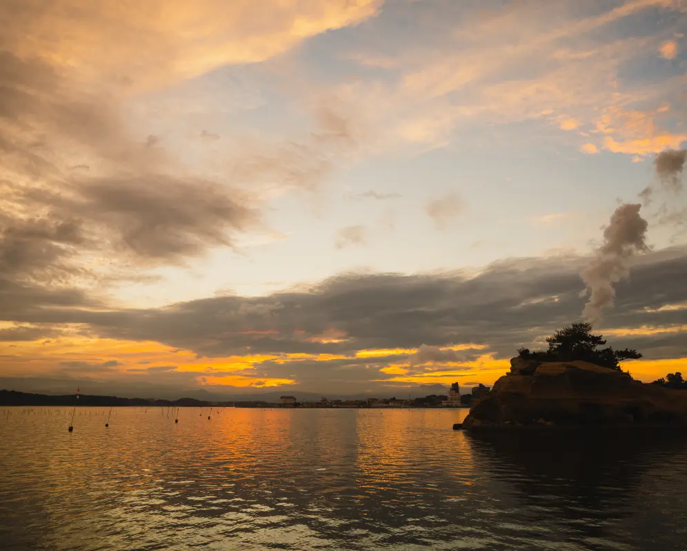 松川浦大橋から望む朝焼けや夕景は格別で、